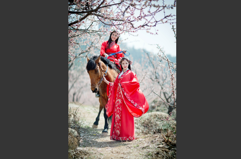 美女著漢服 邂逅杏花雨