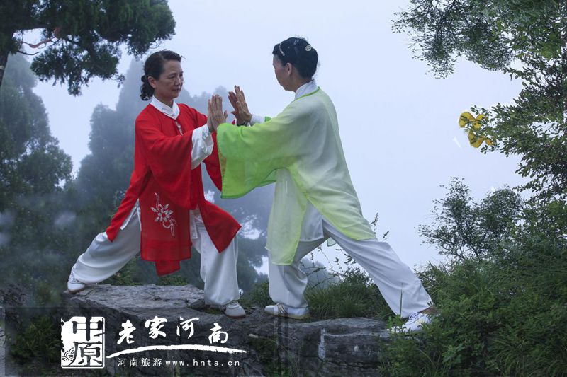 天下第一鐵頂,祈福問道圣地,孕育風(fēng)光無限,探秘太行圣境。日前,太極高手相聚天界山景區(qū),進(jìn)行了一場前所未有的立體展演。太極拳、太極劍、太極扇、太極球、太極推手、太極拂塵等傳統(tǒng)太極項(xiàng)目在太行巔峰圣境回龍▪天界山精彩上演。