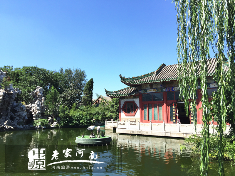 楊家花園采用江南園林造園手法,花園南部挖池疊山,山上建亭,山下修洞,水池上修建九曲橋,臨水建有水榭,形成敞開(kāi)式的山水景觀;▓@的北區(qū)有一座硬山式兩層樓房,前后花磚墀頭,上覆筒瓦頂,琉璃剪邊,有回廊連接樓的北側(cè)有一座古城門樓式的建筑,即“天波門”。
