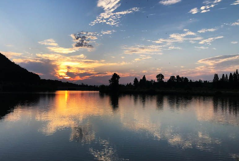無(wú)念湖位于法眼寺正南百米,湖為黃柏山上盆地儲(chǔ)水自然形成,長(zhǎng)平如鏡,一泓湖水,拱衛(wèi)寺門(mén),是傳說(shuō)中的金盆跳鯉之地。