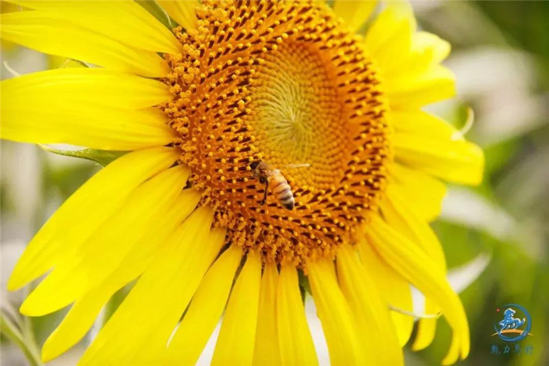 遠(yuǎn)遠(yuǎn)望去,那金黃色的葵海在陽光下熠熠生輝,朵朵葵花迎著太陽盡情綻放著最精彩的生命……