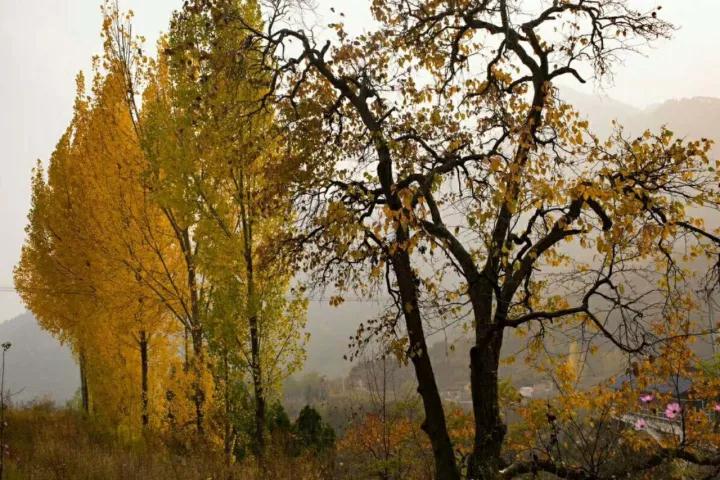 走在那官品臺階的兩旁,看著那旁邊的淺淺黃黃的槐葉。漫步在九品直到一品的小道上,目之所及都是世外桃源的景象。