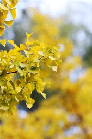 道旁的銀杏由綠變黃,將山路變成了金色。