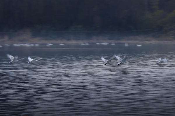 天鵝在水面上飛舞。