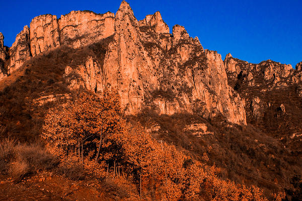 冬日太行:朝陽(yáng)映山川,萬(wàn)木凋零亦多彩