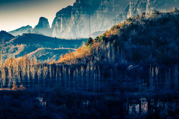 冬日太行:朝陽(yáng)映山川,萬(wàn)木凋零亦多彩