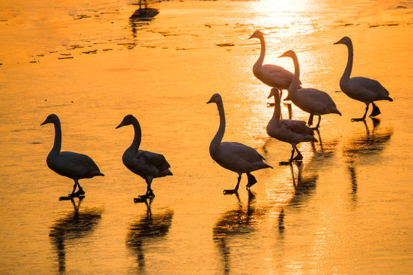 白天鵝:寒冬來棲息,漫步冰湖迎朝陽