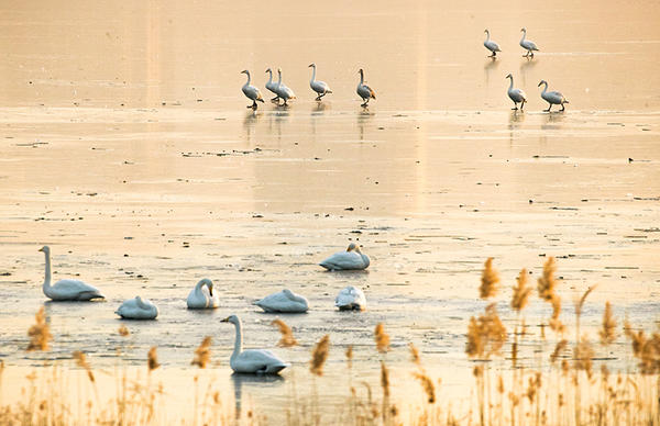 白天鵝:寒冬來棲息,漫步冰湖迎朝陽