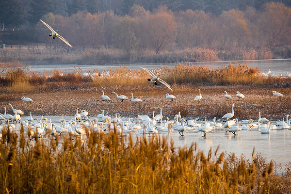 白天鵝:寒冬來棲息,漫步冰湖迎朝陽