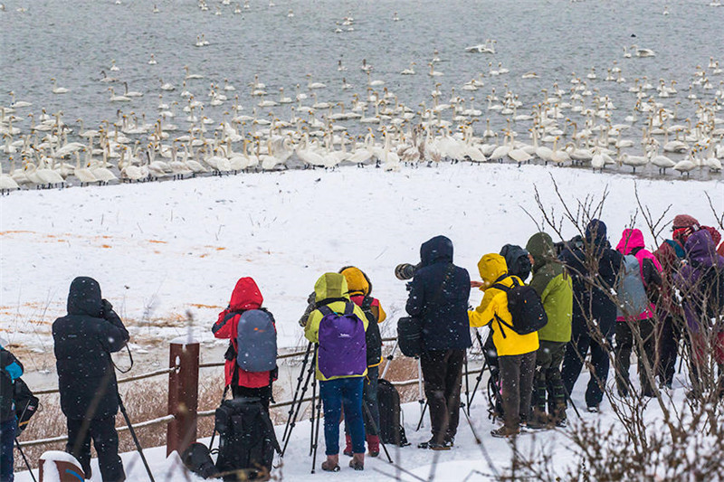數(shù)九寒冬天,三門峽天鵝湖畔每天都有很多人來這里賞天鵝、拍天鵝,這里的天鵝之多令人驚嘆。