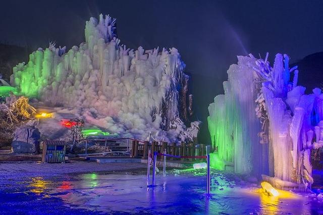 夜晚,在五彩繽紛的燈光映照下,原本在白天里透著清冷冰藍(lán)的冰掛,搖身一變,顯得鮮明生動(dòng)。
