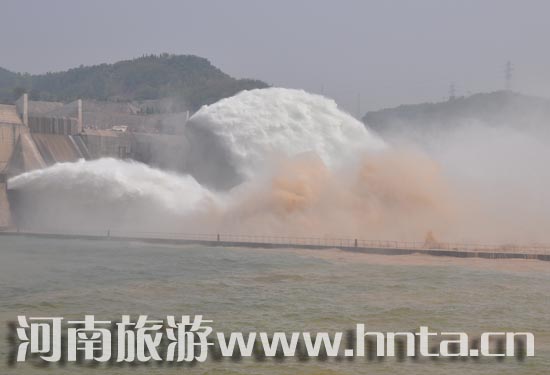 6月19日,2010中國黃河小浪底觀瀑節(jié)在小浪底風(fēng)景區(qū)開幕。開幕式后小浪底大壩開始開閘放水,只見六條黃白交織的水龍和沙龍從壩板洞中噴涌而出,氣勢磅礴,驚濤拍岸。