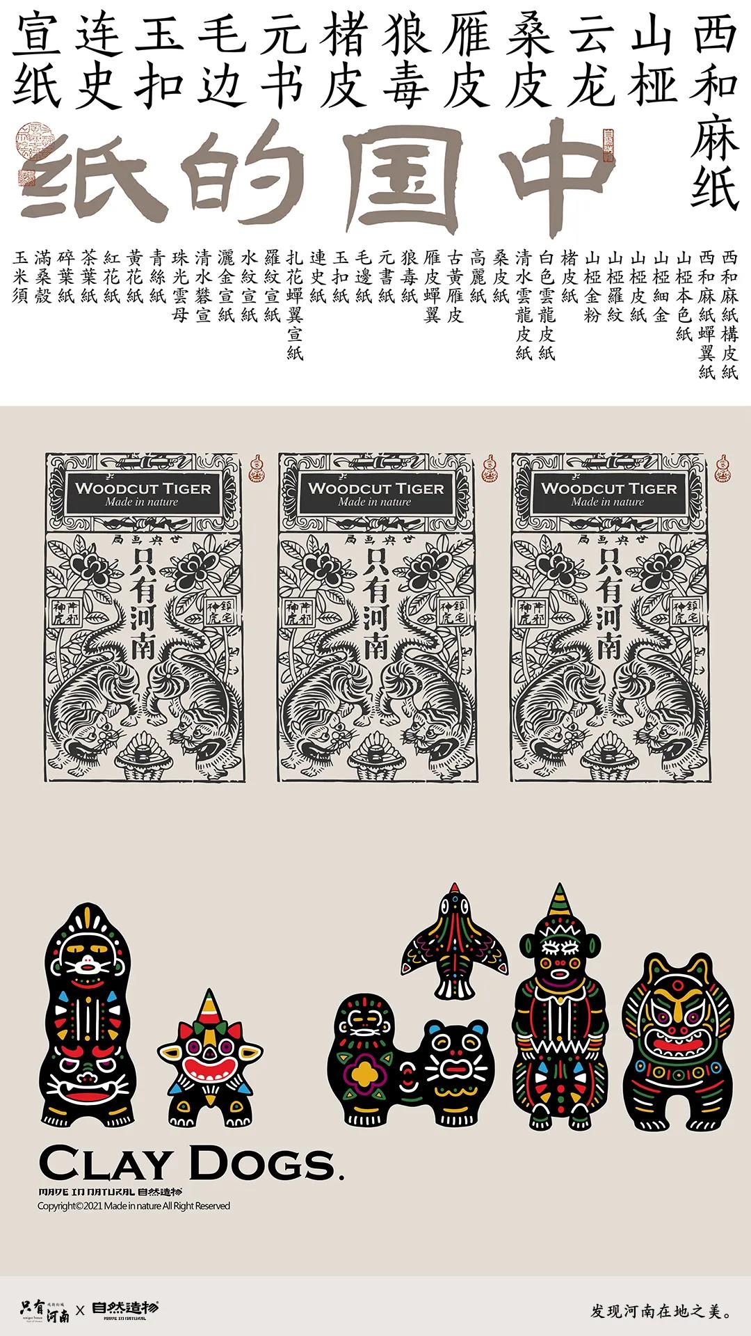 產(chǎn)品組的小伙伴開始出發(fā),對(duì)河南的產(chǎn)品體系進(jìn)行考察,提取當(dāng)?shù)靥厣兀?font color="#FF0000">確定了【紙上河南】與【泥泥狗和布老虎】?jī)蓚(gè)課題,從年畫延伸的紙周邊、不同形式的虎文化、泥泥狗的形象開始第一輪的產(chǎn)品開發(fā)與再造。