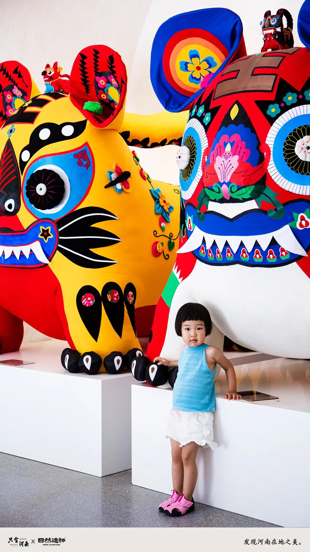 這一空間是以布藝刺繡和泥塑彩繪工藝進(jìn)行展開(kāi)分析解構(gòu),其中包含浚縣萬(wàn);、淮陽(yáng)泥泥狗、?h泥咕咕、鄭州猴加官等幾個(gè)主要地區(qū)的手工藝。