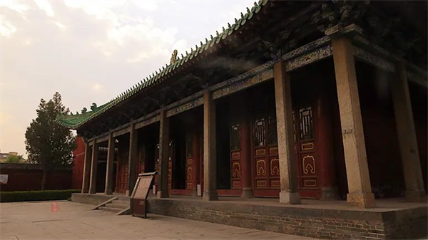 到了戟門。旁邊的墻上嵌有康熙六年(1667年)重修碑“謁弦歌臺(tái)”。戟門在一些地方的孔廟又稱儀門、至圣門。文官至此整理衣冠,武官至此放下兵器,然后才能進(jìn)入祭拜。