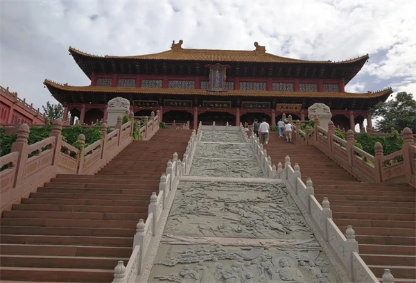 穿過高高聳立、數十米高的寺前牌坊進入寺內,沿寺院中軸線從低到高依次為天王殿、大慈悲殿、四面佛殿等,東西兩側分布著鐘鼓樓、祖師殿、伽藍殿、客堂。