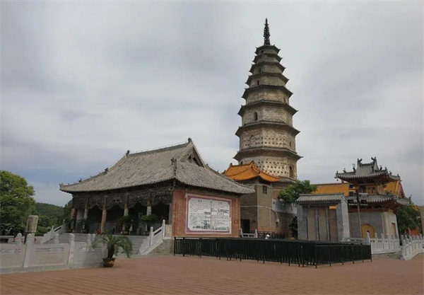 觀音大士塔于北宋熙寧元年(公元1068年)重建,高33米,為八角九級密檐式磚塔,造型別致。塔里完好地保存著一通石碑,即被譽為“三絕碑”的大悲菩薩傳碑。此碑是北宋元符三年(公元1100年)所立,由宋代四大書法家之一的蔡京書寫,又稱蔡京碑。