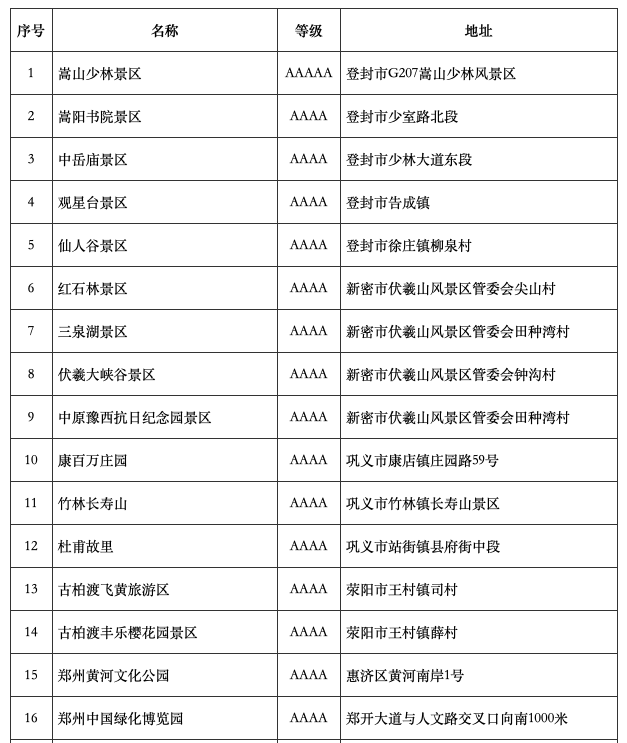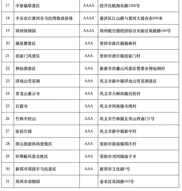 鄭州市退役軍人和其他優(yōu)撫對象優(yōu)待公園、展覽館、名勝古跡、旅游景區(qū)目錄清單: