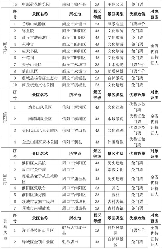 全省239家實(shí)行政府定價或指導(dǎo)定價的旅游景區(qū)減免門票。景區(qū)目錄如下: