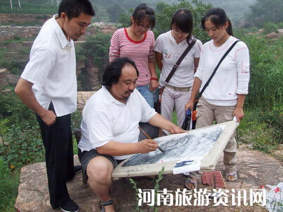 南太行萬(wàn)仙山景區(qū)的郭亮村,因原中央美術(shù)學(xué)院院長(zhǎng)張仃的一幅太行山水墨畫(huà)引起轟動(dòng),從而吸引來(lái)了眾多的藝術(shù)家前來(lái)寫(xiě)生,通過(guò)藝術(shù)家們又帶來(lái)了大批的學(xué)生前來(lái),使郭亮村成了我省乃至全國(guó)著名的寫(xiě)生基地,著名的畫(huà)家杜月濤博士就是其中之一。 杜月濤自1995 年開(kāi)始,杜月濤先生十上太行山的郭亮村現(xiàn)場(chǎng)寫(xiě)生習(xí)作。不論春夏秋冬從未停筆。他每一次來(lái)到太行山都有不同的感受,這里的山山水水都深刻留在杜先生的腦海中,太行山的山水也在他的畫(huà)中表現(xiàn)的淋漓盡致。他還專一寫(xiě)了“ 太行山寫(xiě)生記”:甲申之歲,暮秋重九,攜友人三五,赴太行登高?慈f(wàn)山紅遍,層林盡染,有四方學(xué)子數(shù)千人,云集 萬(wàn)仙山 寫(xiě)生。是日也,云消日出,登高自卑,看山,以國(guó)畫(huà)寫(xiě)生,直抒胸臆,與造物者游。明董玄宰曰: “以境之奇怪論,則畫(huà)不如山水;以筆墨精妙論,則山水絕不如畫(huà) ”。筆走丹青,風(fēng)吹紙碎,啃冷饃,飲涼水,無(wú)中生有,得意忘形,對(duì)景一日,繪就長(zhǎng)卷百尺,苦中作樂(lè),喜甚喜甚。 |