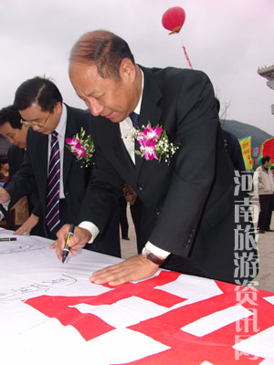楊盛道局長在“熱愛嵩山”條幅上簽字