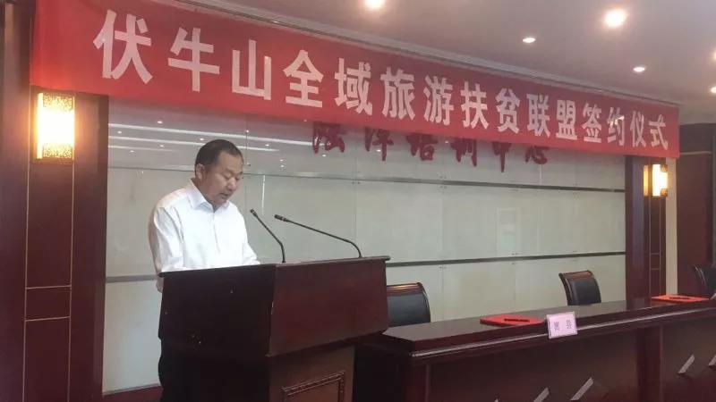 西峽縣縣長周華鋒宣讀《伏牛山全域旅游扶貧聯(lián)盟2018年行動計劃》