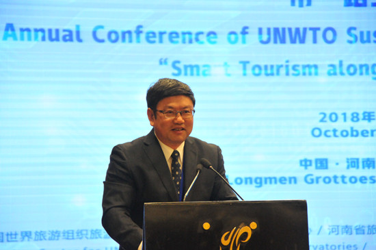 聯(lián)合國世界旅游組織旅游可持續(xù)發(fā)展部部長Dirk Glaeeser博士也通過視頻的方式對(duì)此次大會(huì)的召開及龍門石窟獲得第十四屆聯(lián)合國世界旅游組織“公共政策和管理創(chuàng)新”獎(jiǎng)表示祝賀。