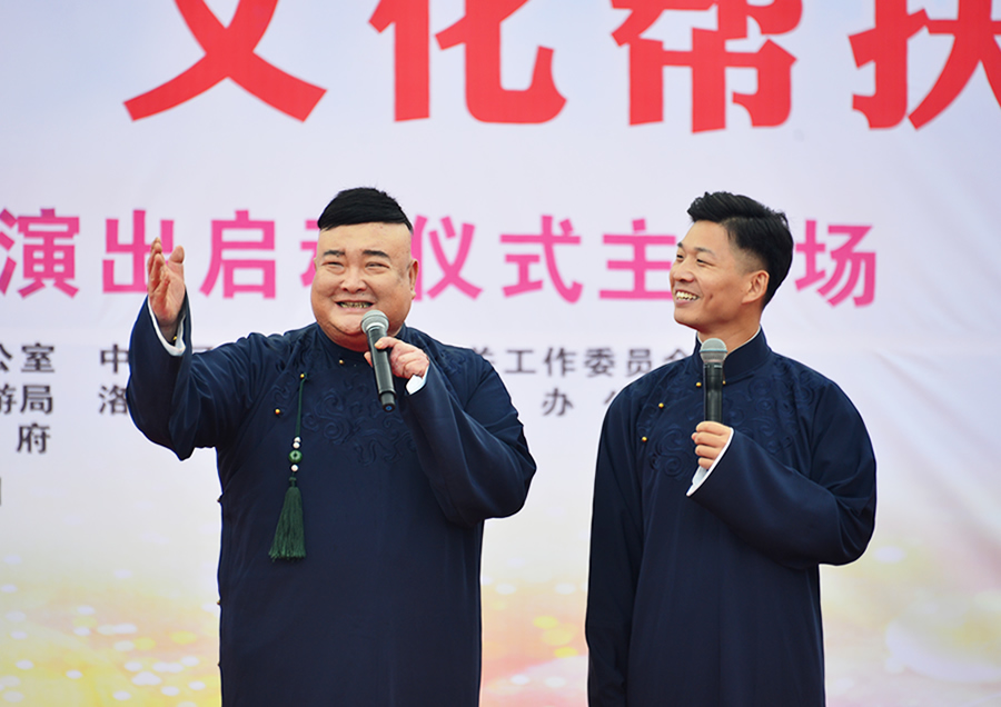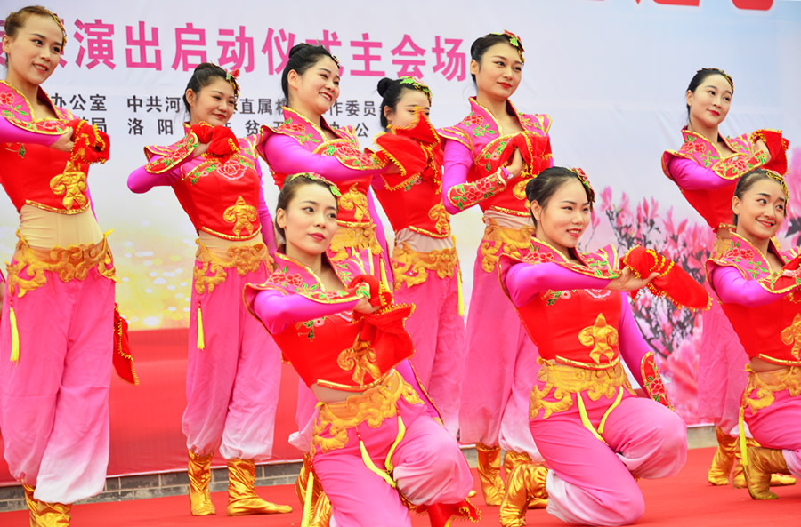 8月13日,由河南省文化和旅游廳、河南省扶貧開發(fā)辦公室、中共河南省委直屬機關(guān)工作委員會共同主辦的2020年“脫貧路上手拉手、文化幫扶心連心——舞臺藝術(shù)送基層”專項演出活動在洛陽市汝陽縣、平頂山市寶豐縣、新鄉(xiāng)市輝縣市、南陽市新野縣同時啟動。河南省人民政府副省長武國定出席了汝陽縣十八盤鄉(xiāng)趙莊村的主會場啟動儀式并宣布活動啟動,省文化和旅游廳廳長姜繼鼎,省扶貧辦副主任汪繼章、方國根,省委宣傳部二級巡視員鄭志宏等出席了活動,洛陽市政府副市長王軍主持了啟動儀式。