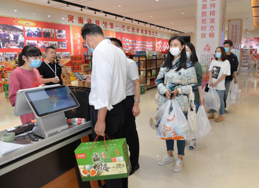 參與消費(fèi)扶貧,助力脫貧攻堅(jiān)。扶貧產(chǎn)品展銷(xiāo)廳內(nèi),米、面、油等生活物資,獼猴桃、蘋(píng)果、雞蛋等生態(tài)農(nóng)產(chǎn)品,以及信陽(yáng)毛尖、道口燒雞、新鄭大棗等地區(qū)特產(chǎn)琳瑯滿(mǎn)目,應(yīng)有盡有。扶貧產(chǎn)品包裝精美、物美價(jià)廉,受到廣大干部職工的喜愛(ài),大家踴躍選購(gòu),以實(shí)際行動(dòng)參與到消費(fèi)扶貧行動(dòng)中。