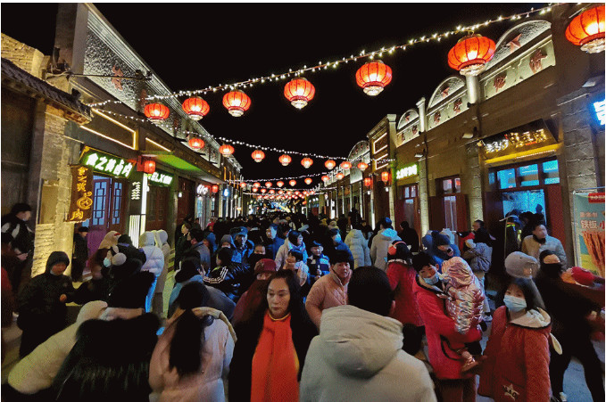 為增加游客的體驗(yàn)度,各地各景區(qū)紛紛組織特色活動,為即將到來的春節(jié)烘托氣氛。清明上河園景區(qū)提前布置了2021年民俗文化節(jié)大型燈組,讓游客感受到濃郁的節(jié)日氛圍,假日期間增加經(jīng)典演出場次,每天演出近70場。建業(yè)電影小鎮(zhèn)舉辦“貓小姐的星光跨年趴”主題活動,貓咪巡游、迎新蹦迪、跨年音樂趴等近百場互動節(jié)目輪番上演。信陽新縣各鄉(xiāng)鎮(zhèn)、景區(qū)紛紛舉辦文藝晚會、民俗演出等年味十足的傳統(tǒng)文化活動。書法寫作、詩歌朗誦、曲藝演唱、抖音直播等活動頻繁開展,地?zé)魬颉⑵び皯、花鼓戲、舞獅、旱船等民俗文化活動精彩不斷,為游客提供了豐盛的文化大餐。