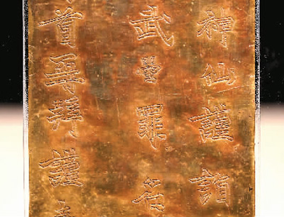 河南博物院“鎮(zhèn)院之寶”武則天金簡(jiǎn)(局部)。新華社記者 李安 攝