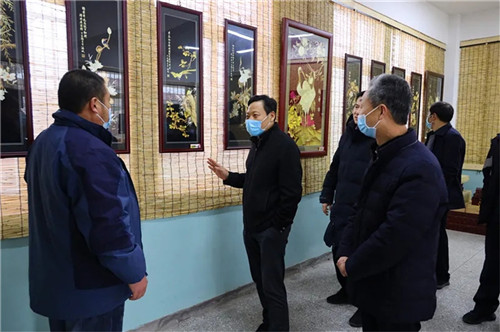 在大朱行政村小學(xué)的蘆葦畫展廳里,李延慶仔細聽取了淮陽金穗子蘆葦工藝有限公司經(jīng)理、市級非遺傳承人葛磊的介紹,他對葛磊“用匠人手藝助殘扶困”的事跡表示欣賞,并鼓勵他利用家鄉(xiāng)優(yōu)勢資源,為打造淮陽優(yōu)質(zhì)文創(chuàng)產(chǎn)品作出更大貢獻。