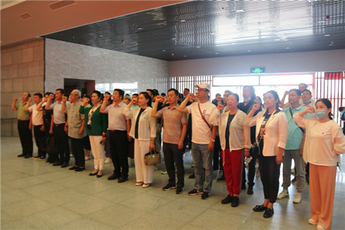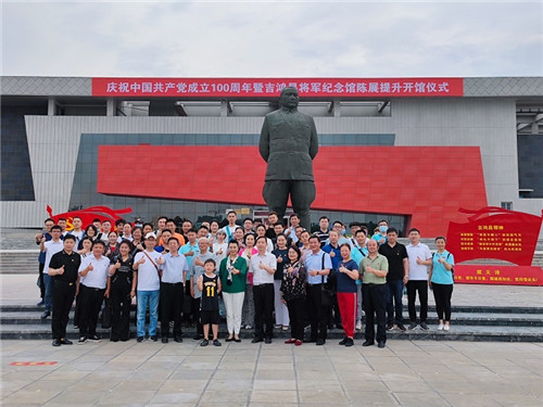 河南豫劇院黨員干部一行首先來到吉鴻昌將軍策馬雕像前,瞻仰英雄英姿,欽慕吉鴻昌將軍追尋民族未來的浩然正氣和愛國情懷。面對革命先烈雕像,河南豫劇院黨員干部莊嚴(yán)宣誓,重溫入黨誓詞,牢記中國共產(chǎn)黨人的初心和使命:為中國人民謀幸福,為中華民族謀復(fù)興。