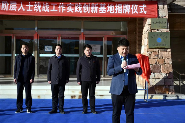 寄料鎮(zhèn)黨委書記高項冰致辭,他對前來參加本次揭牌儀式的領(lǐng)導(dǎo)、嘉賓表示歡迎。而后簡要介紹了河南九峰山景區(qū)近些年的發(fā)展建設(shè)情況。他表示此次基地的建立,是寄料鎮(zhèn)深入貫徹落實中央、省委、平頂山市委、汝州市委新的階層人士統(tǒng)戰(zhàn)工作會議精神,推動我市新的社會階層人士統(tǒng)戰(zhàn)工作深入開展的具體實踐,也必然對九峰山知名度的提升起到有效的宣傳作用。下一步,寄料鎮(zhèn)將以此為契機,堅持正面引導(dǎo),把實踐創(chuàng)新基地建設(shè)成為我市新的社會階層人士學(xué)習(xí)習(xí)近平新時代中國特色社會主義思想、強化“四個意識”的思想陣地;成為黨和政府聯(lián)系新社會階層人士、幫助他們解決實際困難的橋梁和紐帶;成為新的社會階層人士助推創(chuàng)新創(chuàng)業(yè)、促進鄉(xiāng)村振興的實驗田。