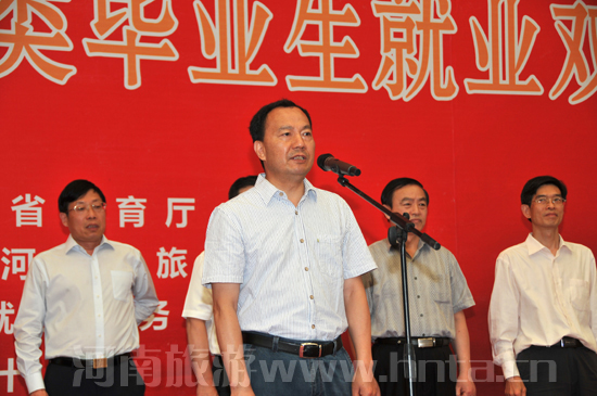 為促進(jìn)我省旅游類畢業(yè)生順利就業(yè),解決全省旅游企業(yè)人才短缺的難題,5月12日,由省旅游局、省教育廳聯(lián)合主辦,河南省旅游局人才中心和鄭州旅游職業(yè)學(xué)院具體承辦的“2017河南省旅游人才交流大會暨旅游類畢業(yè)生就業(yè)雙選會”在鄭州旅游職業(yè)學(xué)院隆重開幕。河南省旅游局黨組書記、局長寇武江宣布大會開幕,省旅游局黨組成員、副局長周耀霞出席開幕式并講話。