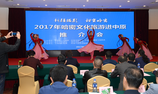 4月13日,以“新疆縮影·甜蜜哈密”為主題的2017年哈密文化旅游進(jìn)中原推介會(huì)在鄭州舉行。河南省旅游局局長(zhǎng)寇武江、副局長(zhǎng)周耀霞,鄭州市政府辦公廳副主任張曉英,鄭州市旅游局局長(zhǎng)張杰鋒,哈密市委常委、宣傳部部長(zhǎng)李秋瑾,哈密市旅游局局長(zhǎng)趙海燕以及豫哈兩地旅行社代表、相關(guān)企業(yè)負(fù)責(zé)人、媒體記者等200余人參加了推介會(huì),共同見(jiàn)證了“河南萬(wàn)人游哈密”升級(jí)計(jì)劃的啟動(dòng)、哈密旅游河南營(yíng)銷(xiāo)推廣聯(lián)盟的成立及“哈密旅游河南宣傳推廣中心”正式掛牌。