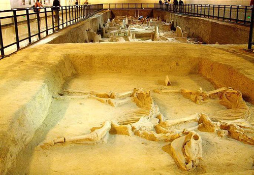 洛陽(yáng)周王天子駕六博物館位于洛陽(yáng)市中心的王城廣場(chǎng),東周王城遺址區(qū)的東北部,是一座以原址保護(hù)展示的東周時(shí)期大型車(chē)馬坑為主體的專(zhuān)題博物館。整個(gè)博物館占地1700多平方米,分為兩個(gè)展區(qū)。步入博物館大門(mén),首先映入眼簾的是第一展區(qū)。分四個(gè)板塊,一是洛陽(yáng)地區(qū)5大都城與當(dāng)代洛陽(yáng)相互位置關(guān)系的圖版;二是東周王城概況;三是王陵的探索與發(fā)現(xiàn);四是…