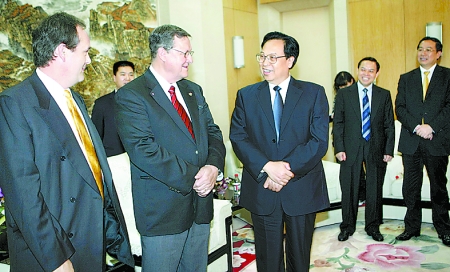 4月9日下午,省委書(shū)記、省人大常委會(huì)主任徐光春在鄭州親切會(huì)見(jiàn)了專程前來(lái)參加2008中國(guó)(鄭州)世界旅游城市市長(zhǎng)論壇的部分代表,并進(jìn)行了真摯友好的交談。