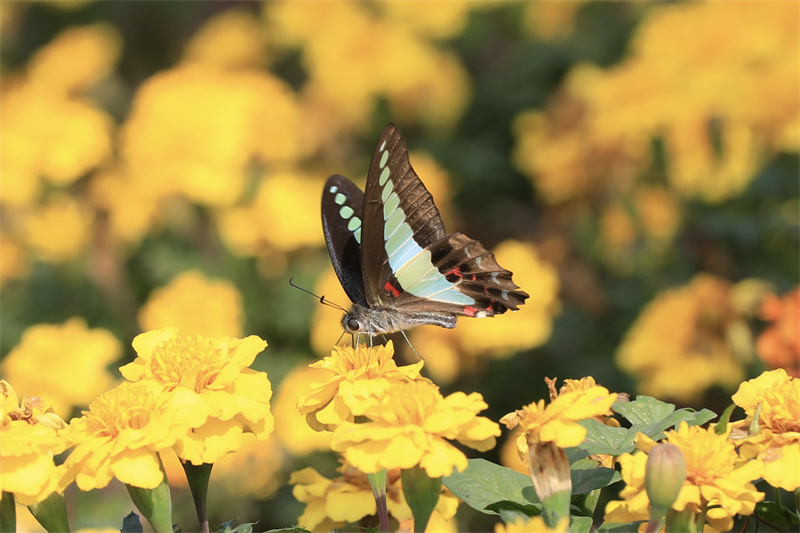 近日,開封市街頭、景區(qū)的菊花競相綻放,朵朵菊花散發(fā)出陣陣幽香,引得蜜蜂、蝴蝶縈繞花間。開封+記者 姜菡 10月30日攝