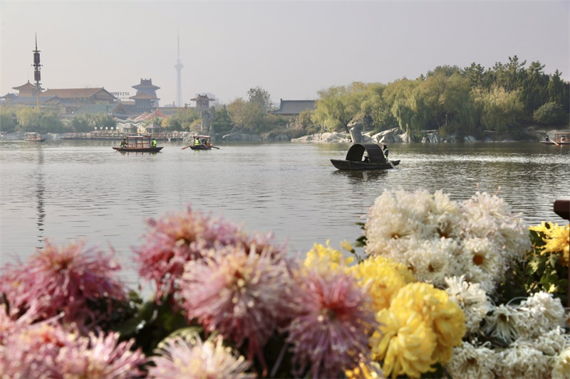 11月20日, 開封陽光明媚,溫潤暖冬,市民與游客的賞菊熱情絲毫不減。 開封+記者 姜菡 攝