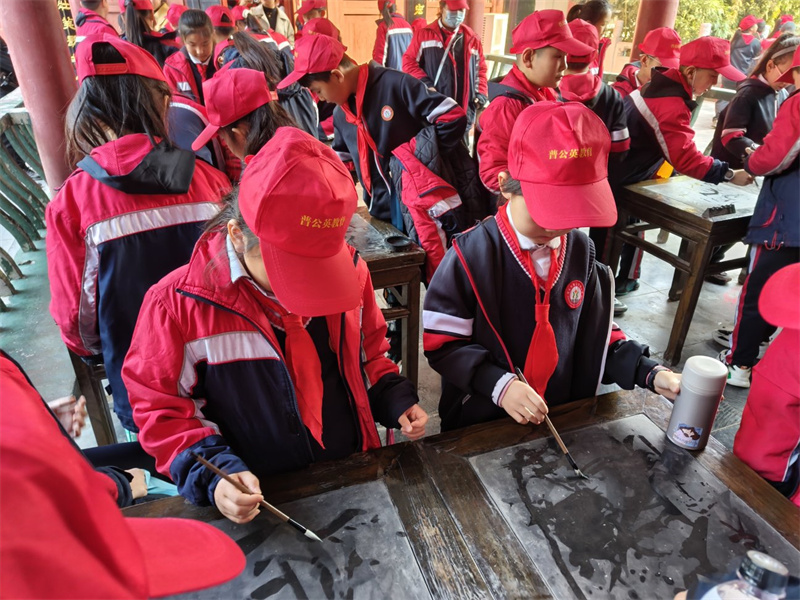 11月27日,學(xué)生在中國翰園碑林景區(qū)開展研學(xué)活動(dòng),增強(qiáng)對傳統(tǒng)文化知識的理解和掌握,樹立文化自信。 開封+記者 袁洋 攝