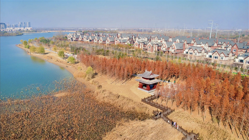 近日,黑崗口調(diào)蓄水庫附近成片水杉樹葉變紅,色彩艷麗,風(fēng)景如畫,吸引不少市民前來打卡。開封+記者 姜菡 12月4日 攝