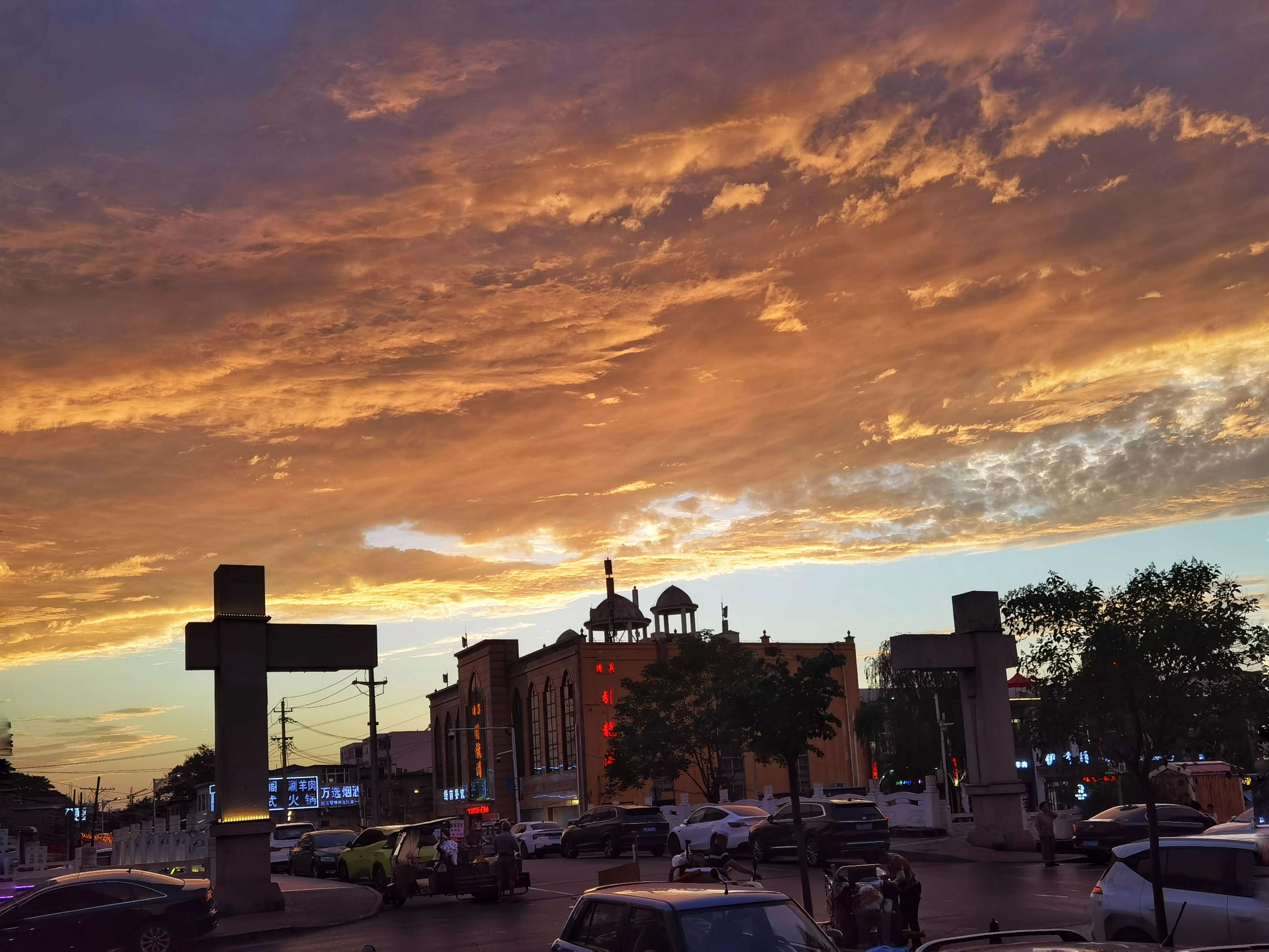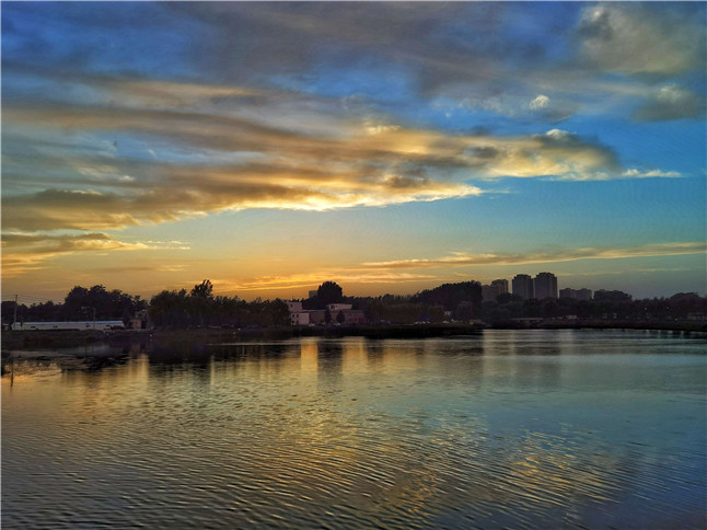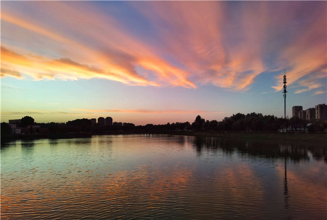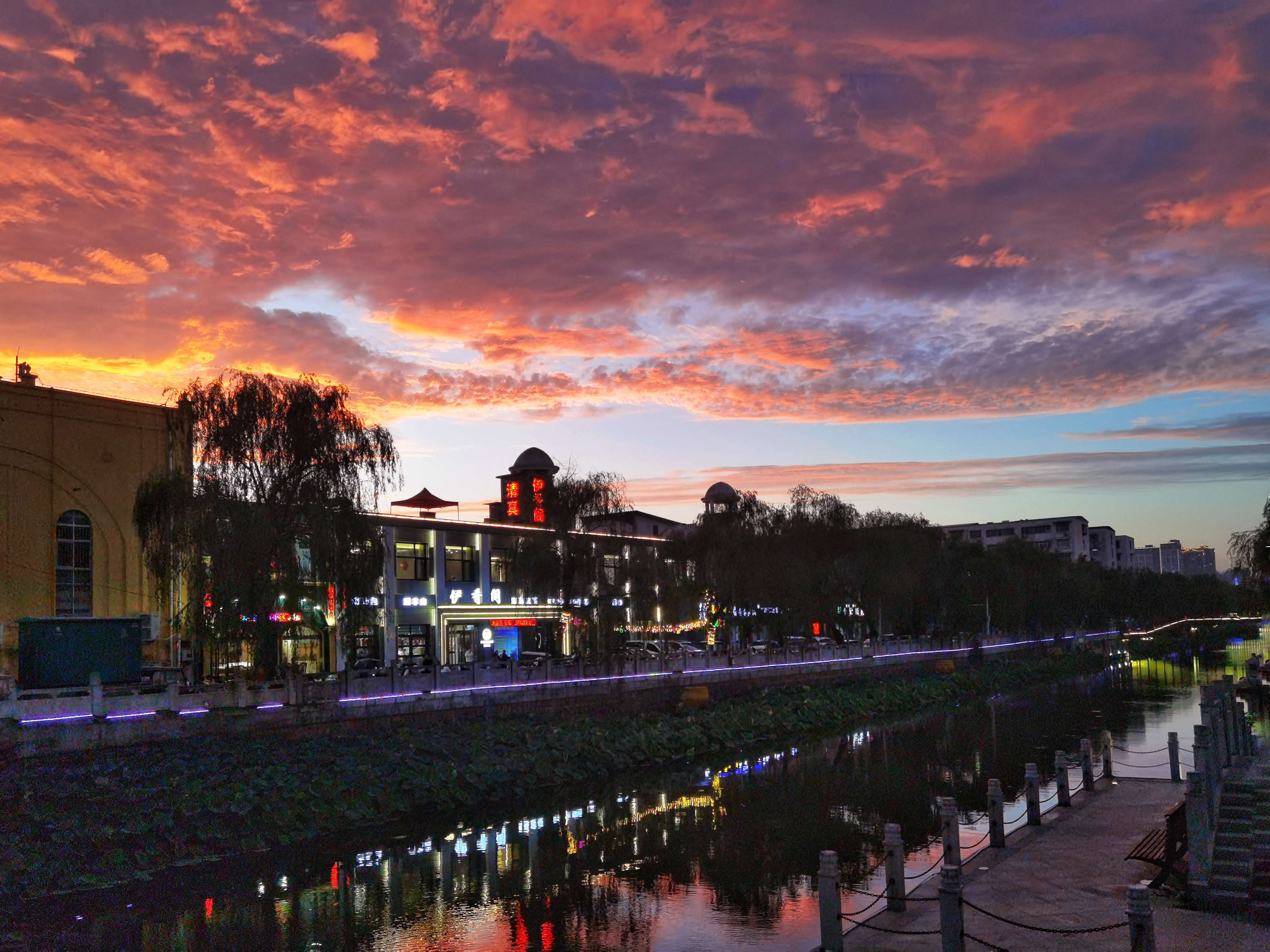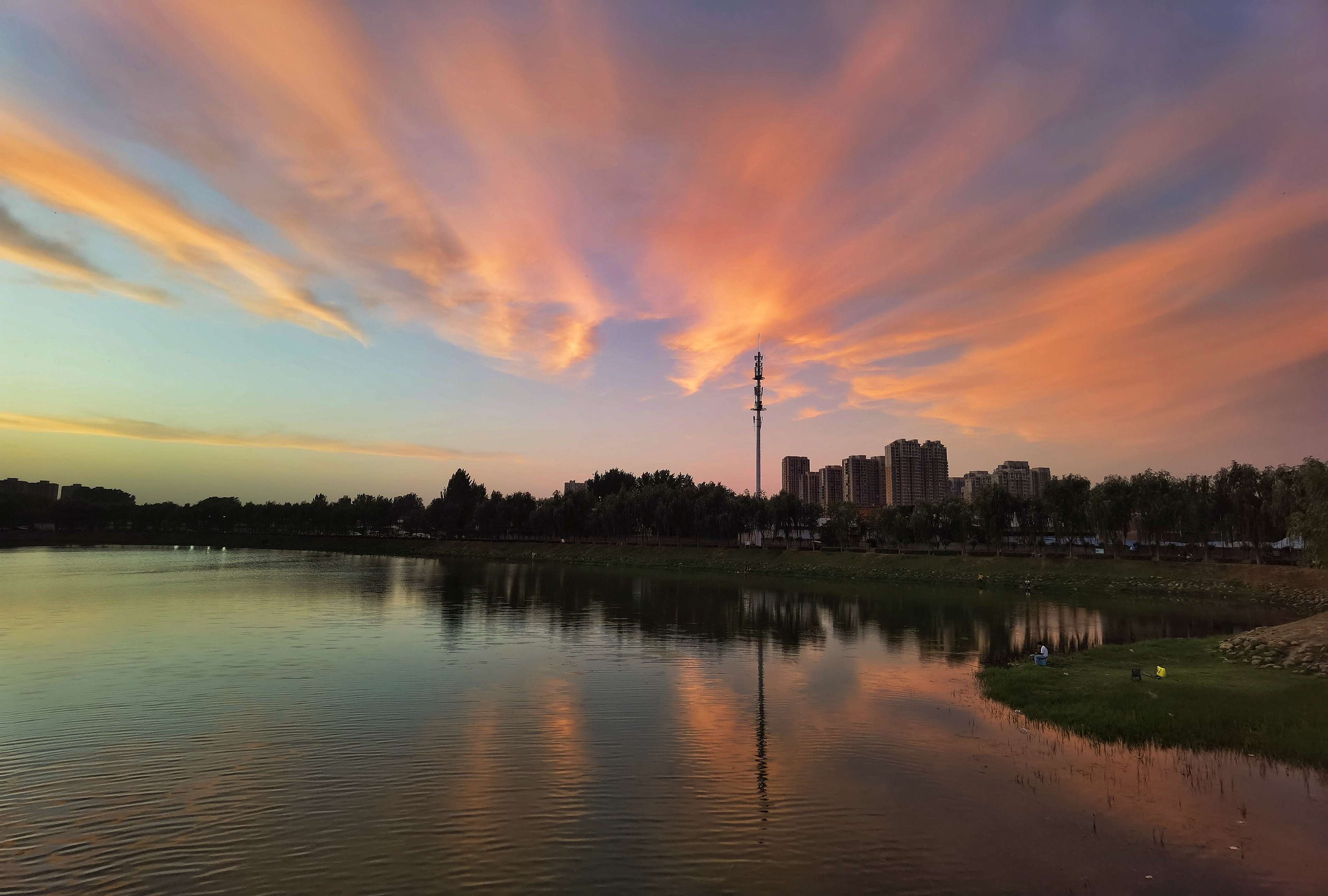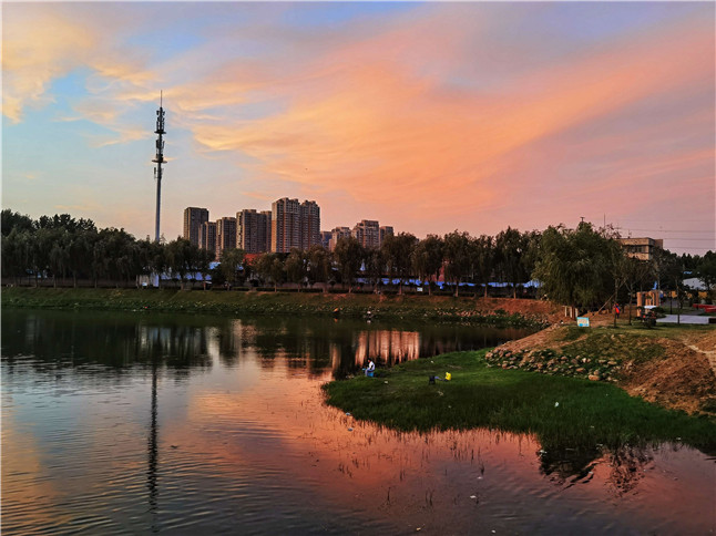 近日,河南許昌持續(xù)高溫天氣,傍晚時分的落日余暉把許昌裝扮得分外妖嬈。