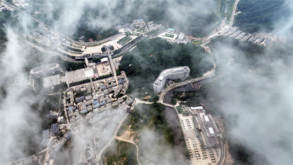 近日,一場夏雨過后,位于汝陽縣的西泰山上空云霧繚繞,景色秀麗,平流霧似輕紗飄動在景區(qū)上空,宛若進入一幅綺麗的畫卷。遠處的青山、靜謐的民宿在縹緲的白霧中平添了幾分詩情畫意。