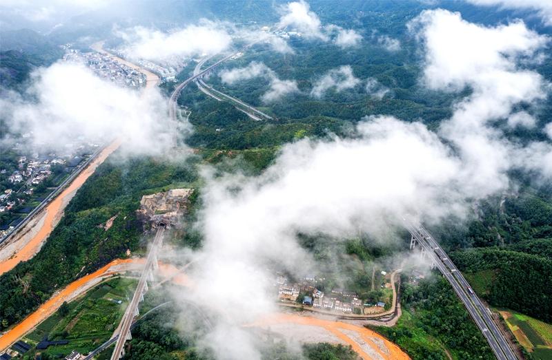 盛夏時(shí)節(jié),雨過(guò)天晴,在豫西伏牛山區(qū)的河南省盧氏縣五里川鎮(zhèn),三淅高速和浩吉鐵路段交匯,火車(chē)與汽車(chē)飛馳在崇山峻嶺之間,處處云霧繚繞,美不勝收。近年來(lái),蓬勃發(fā)展的交通路網(wǎng)為當(dāng)?shù)匚锪骱徒?jīng)濟(jì)發(fā)展注入強(qiáng)勁動(dòng)力,在方便群眾生產(chǎn)生活的同時(shí),也打通了鄉(xiāng)村振興的致富路。