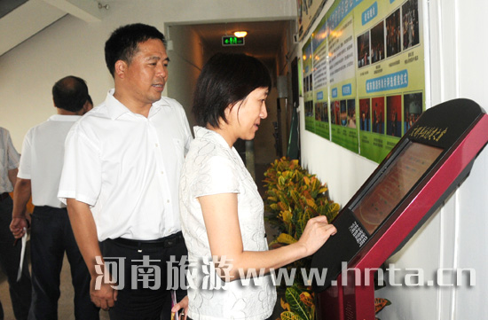 倪豫州副局長通過“文明單位創(chuàng)建之窗”觸摸屏向檢查組介紹情況