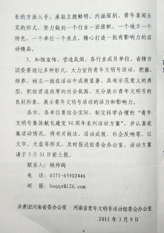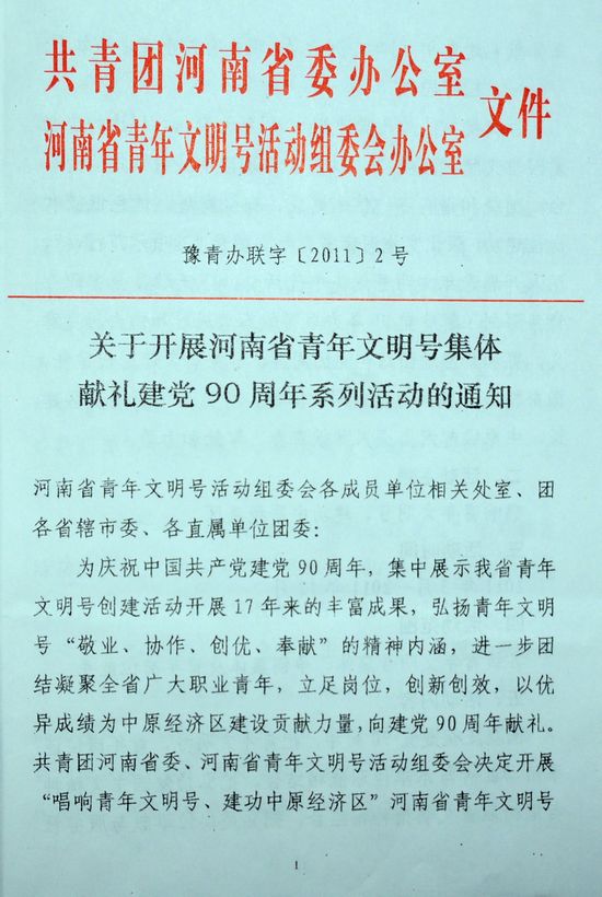 關(guān)于開展河南省青年文明號集體獻禮建黨90周年系列活動的通知
