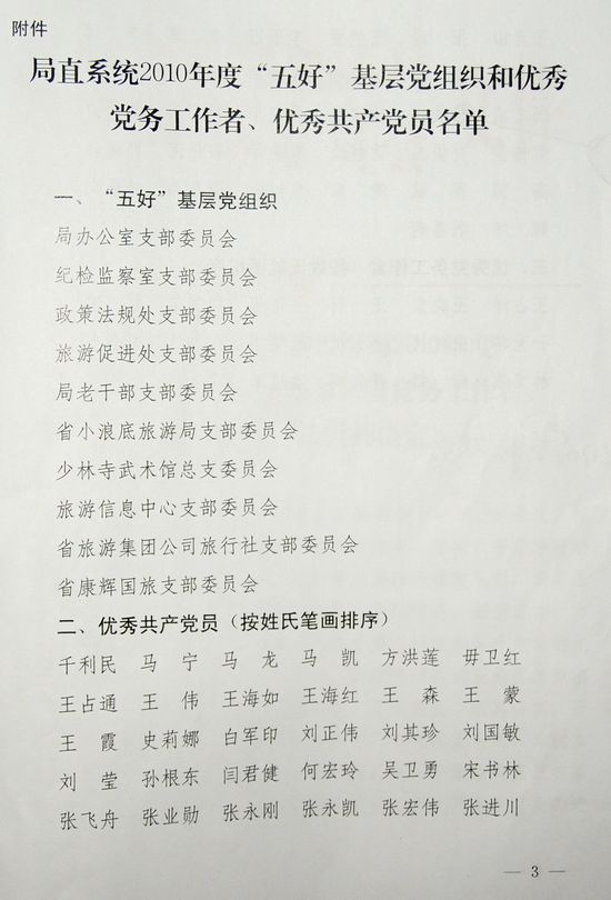 關(guān)于表彰河南省旅游局2010年度“五好”基層黨組織和優(yōu)秀黨務(wù)工作者、優(yōu)秀共產(chǎn)黨員的決定