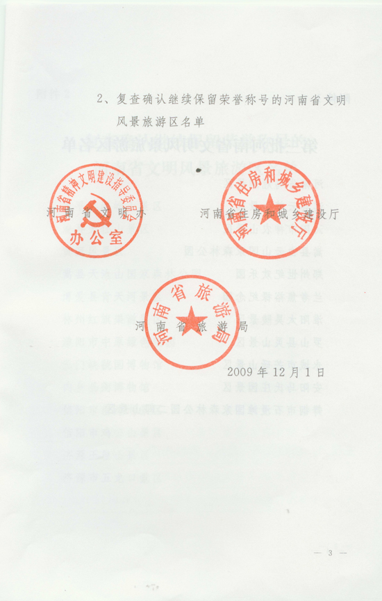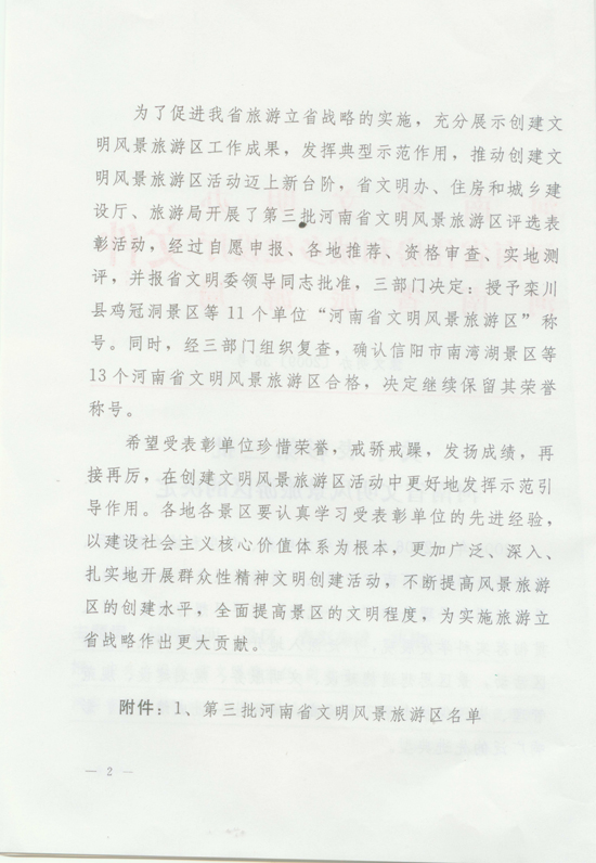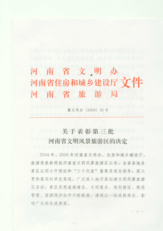 關(guān)于表彰第三批河南省文明風(fēng)景區(qū)旅游區(qū)的決定
