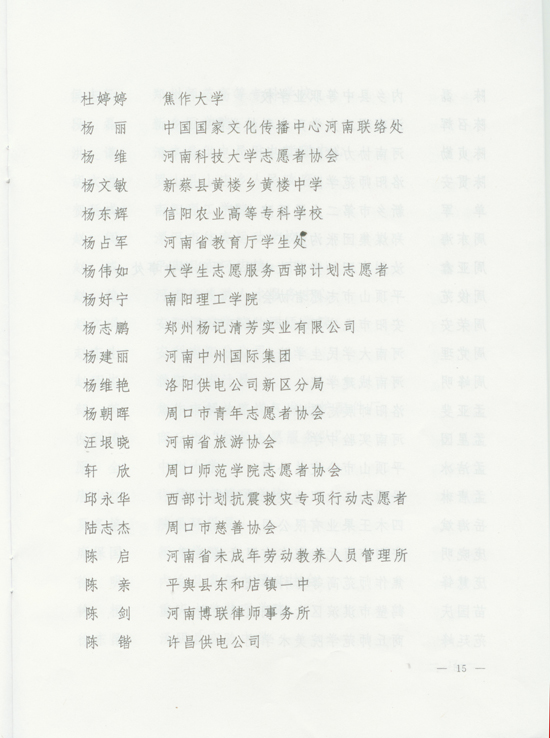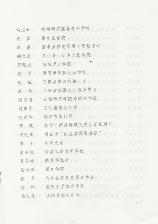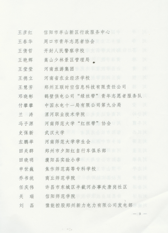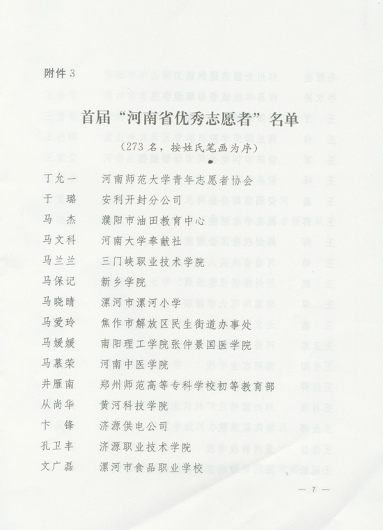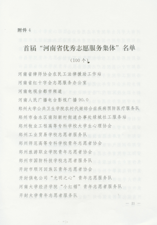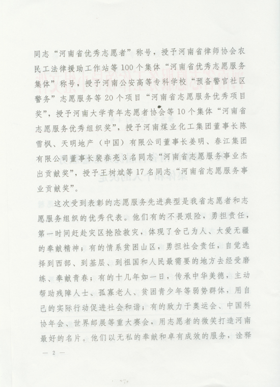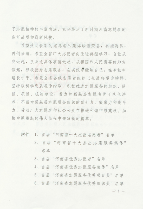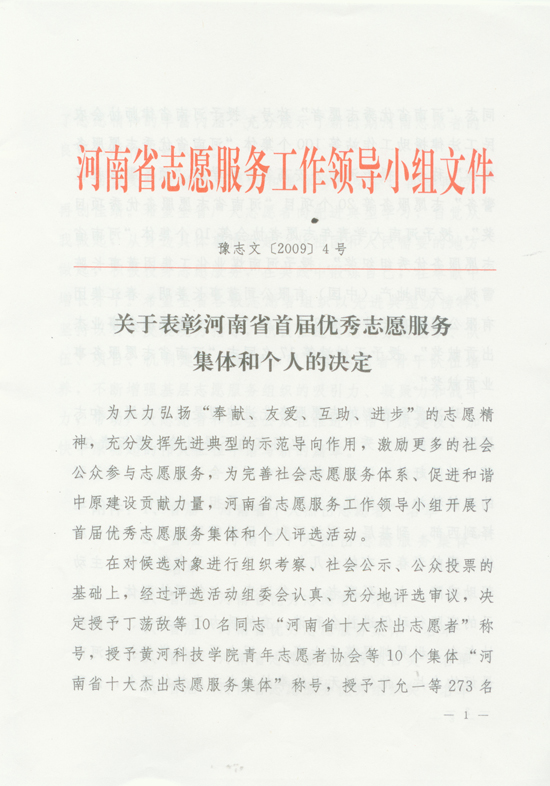 關(guān)于表彰河南省首屆優(yōu)秀志愿服務(wù)集體和個(gè)人的決定